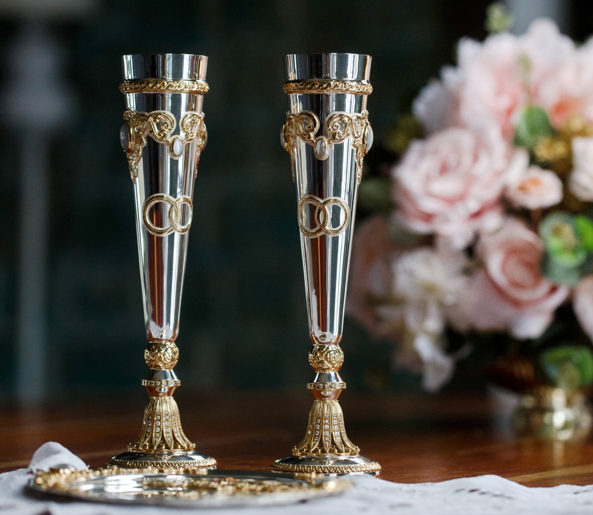 Серебряный набор «Жених и невеста» - Бокалы и поднос