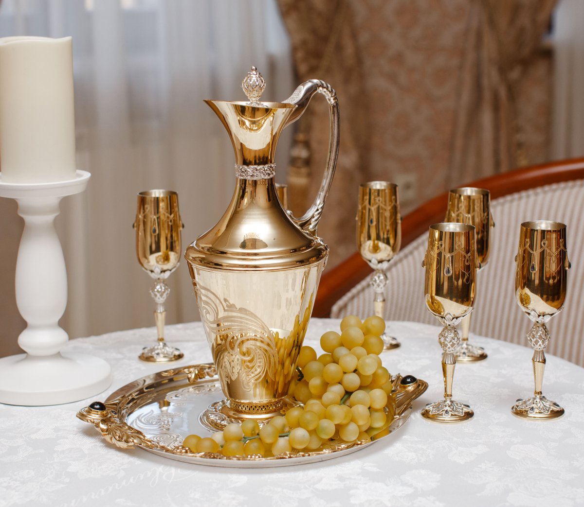 Серебряный набор «Золотая лоза» - Графин и бокалы
