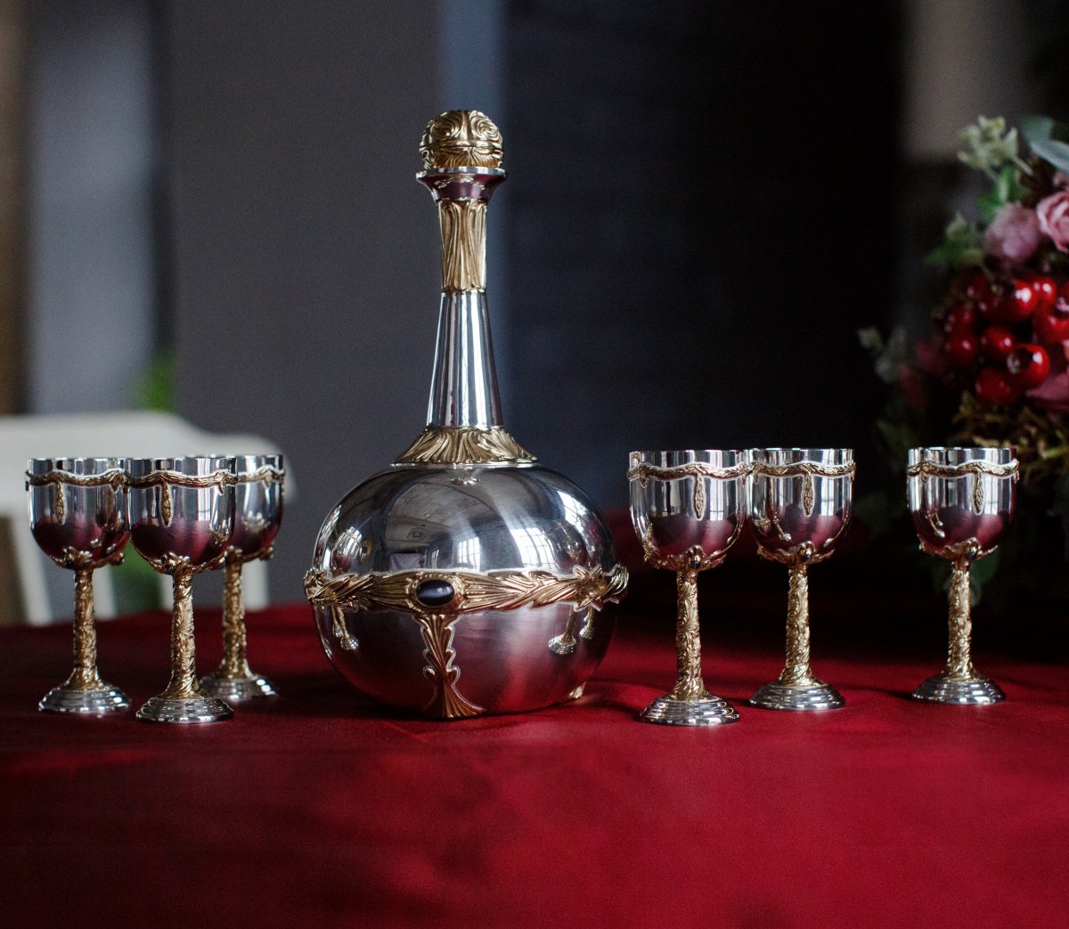 Серебряный набор «Торжественный» - Графин и рюмки артикул 3.8.140/6 купить с доставкой